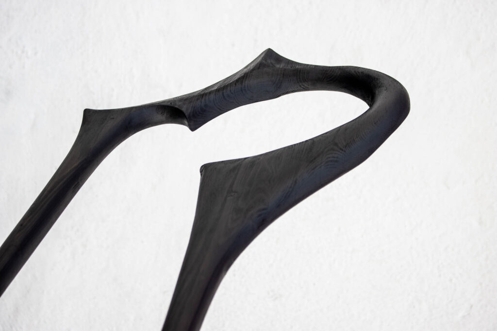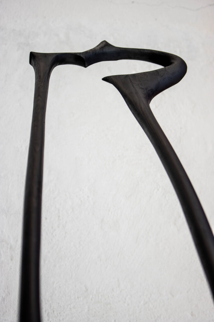 A synthetic semophant, designed and carved without any natural variations in the wood. Even though born out of perfection, still one leg has been replaced for some reason. An accident?